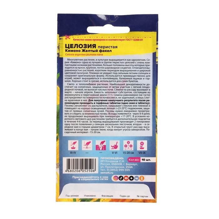 Семена цветов Целозия "Кимоно", желтый факел, перистая, Сем. Алт, ц/п, 10 шт
