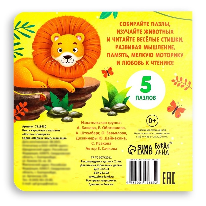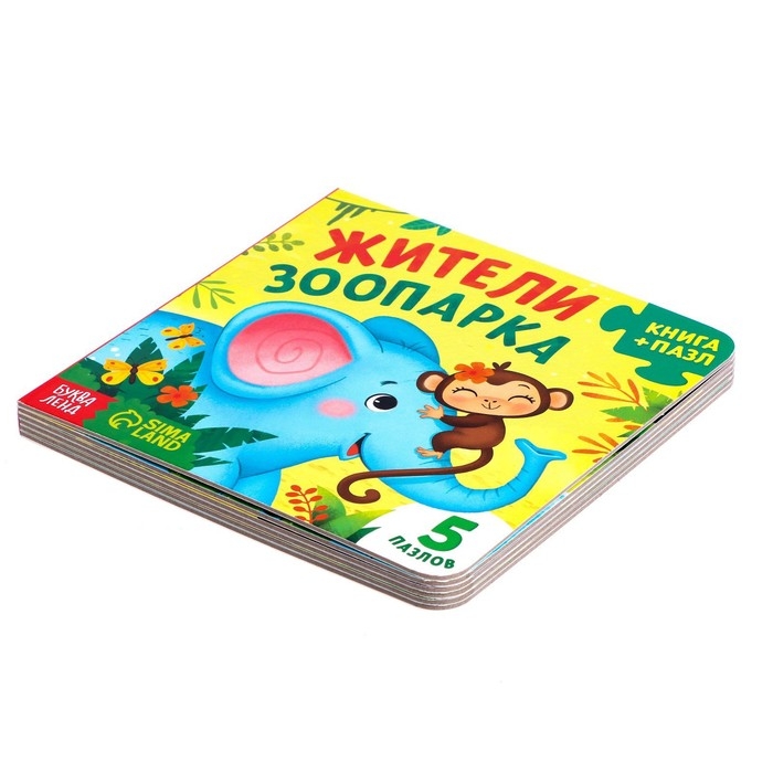 Книга картонная «Жители зоопарка», 12 стр., с пазлами 5 шт.