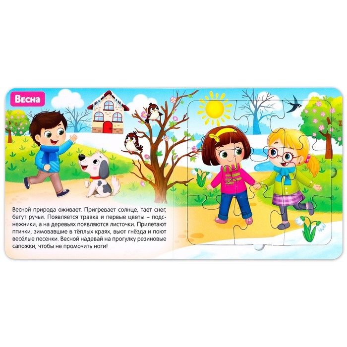 Книга картонная «Зима, весна, лето, осень», 12 стр., с пазлами 5 шт.