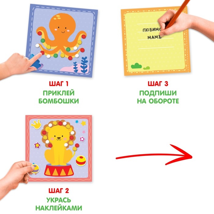 Аппликации бомбошками «Весёлые зверята», 12 стр.