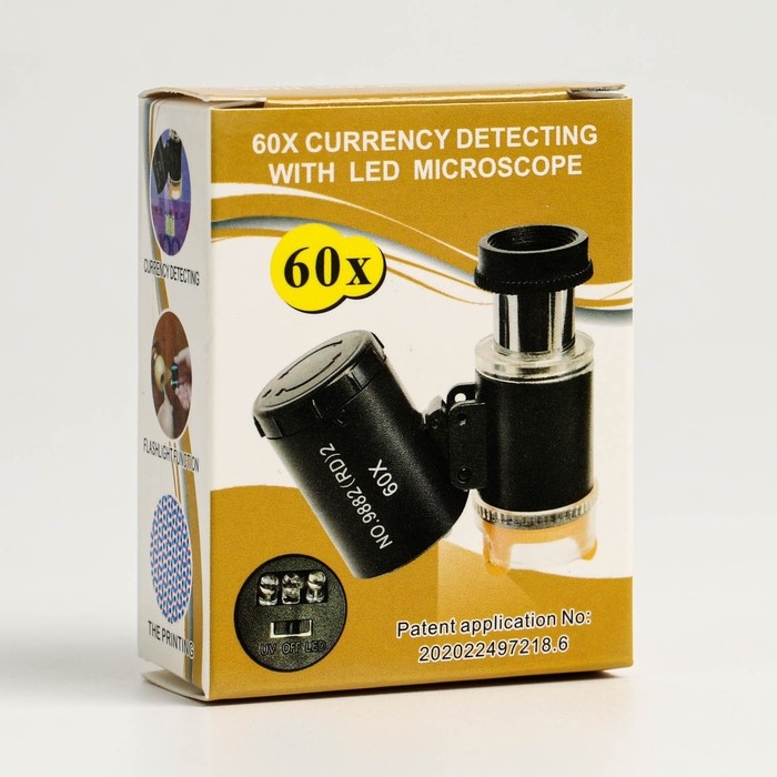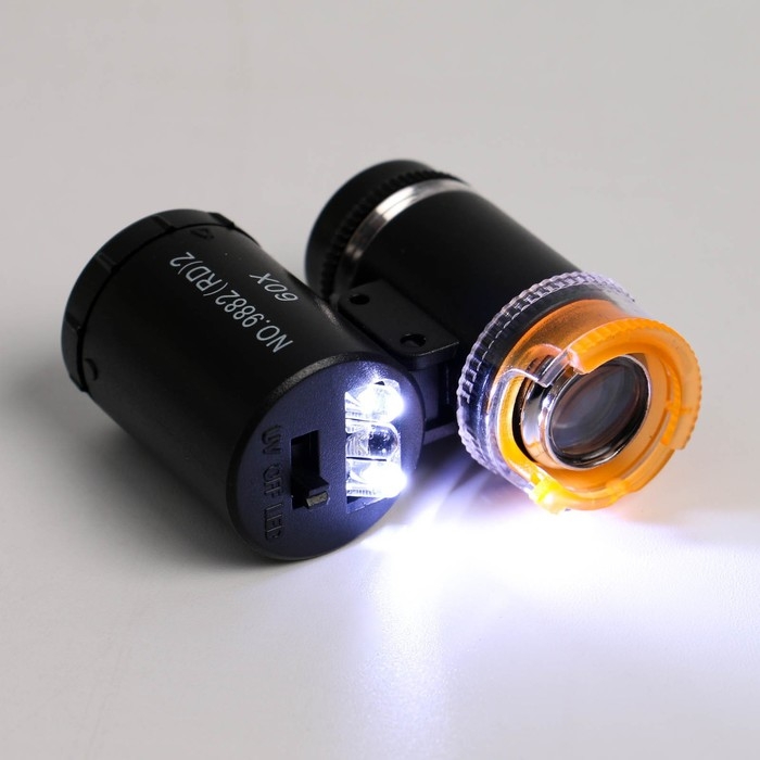 Лупа с подсветкой, для проверки денег, кратность 60х, черная