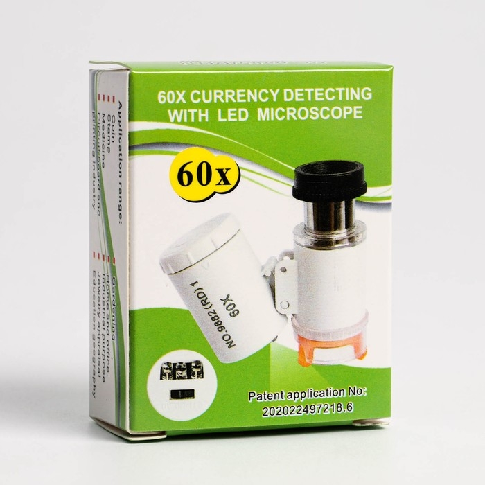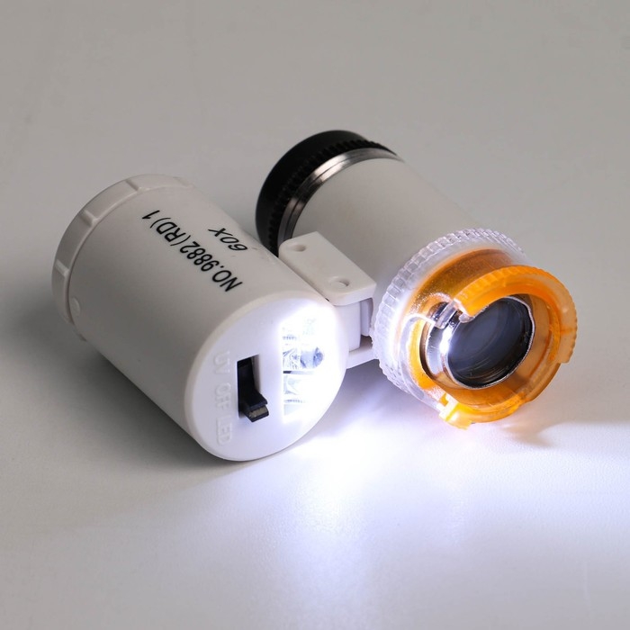 Лупа с подсветкой, для проверки денег, кратность 60х, белая
