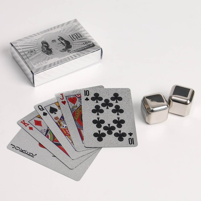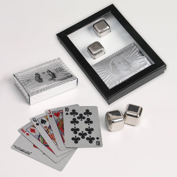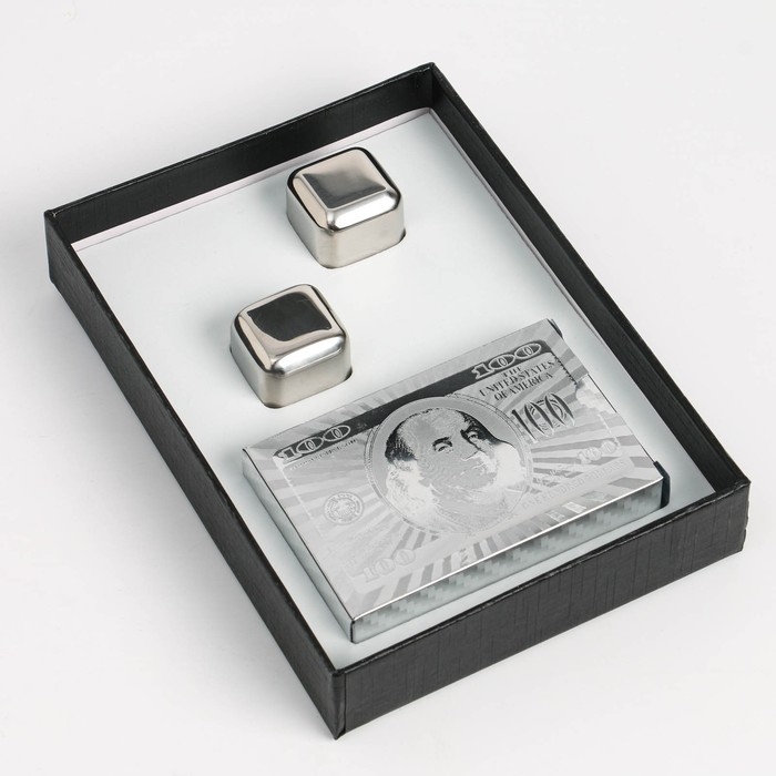 Подарочный набор "100 $": карты и 2 кубика для виски
