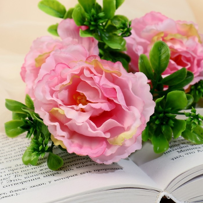 Цветы искусственные "Пион ветка" d-6 см 36 см, розовый