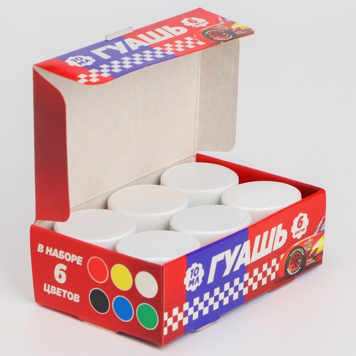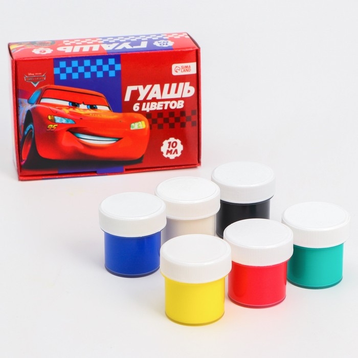 Гуашь 6 цветов по 10 мл, Тачки