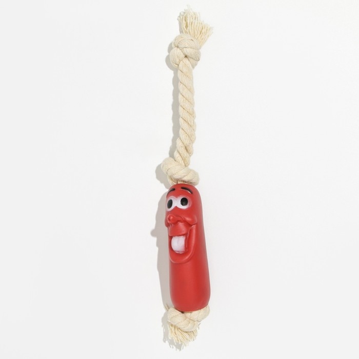 Игрушка "Весёлая сосиска на верёвке" для собак, 14 см