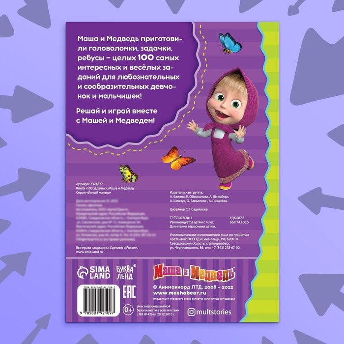 Книга 100 задачек, 44 стр., 17 × 24 см, Маша и Медведь