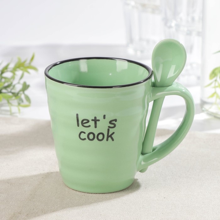 Кружка керамическая с ложкой Доляна «Ноель», 280 мл, цвет зелёный