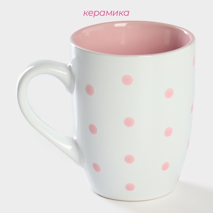 Кружка керамическая Доляна «Горох», 340 мл, цвет розовый