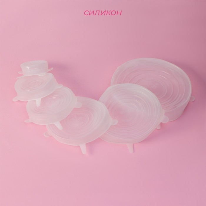 Набор крышек силиконовых Доляна «Черепашка», 6 шт, d=19,2 см, d=15,7 см, d=14 см, d=11,2 см, d=9,2 см, d=6,2 см