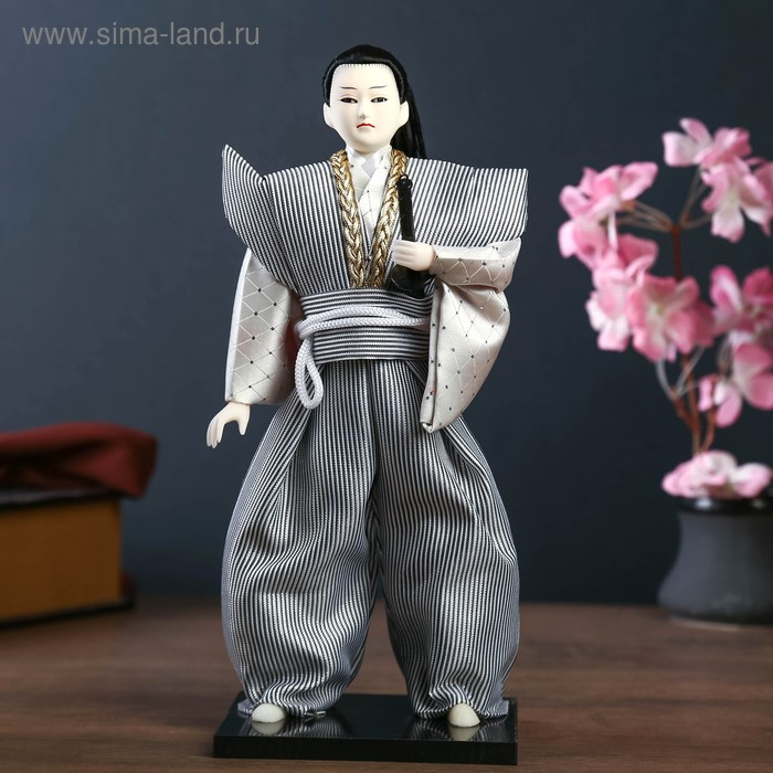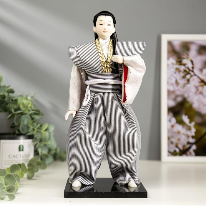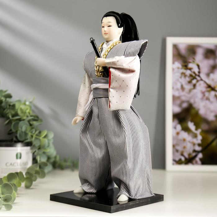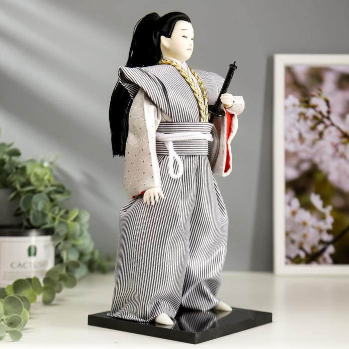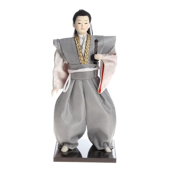 Кукла коллекционная "Самурай в сером кимоно с мечом" 30х12,5х12,5 см