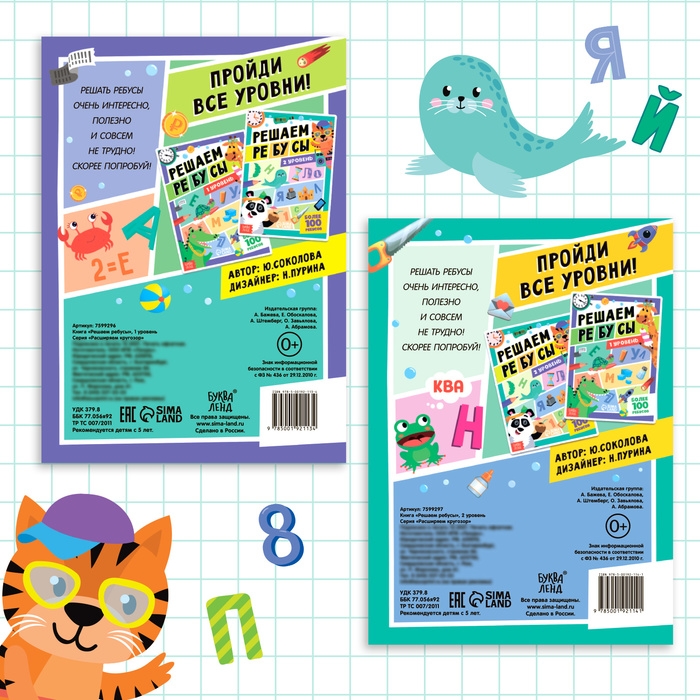 Набор книг «Решаем ребусы», 1 и 2 уровень, по 16 стр.