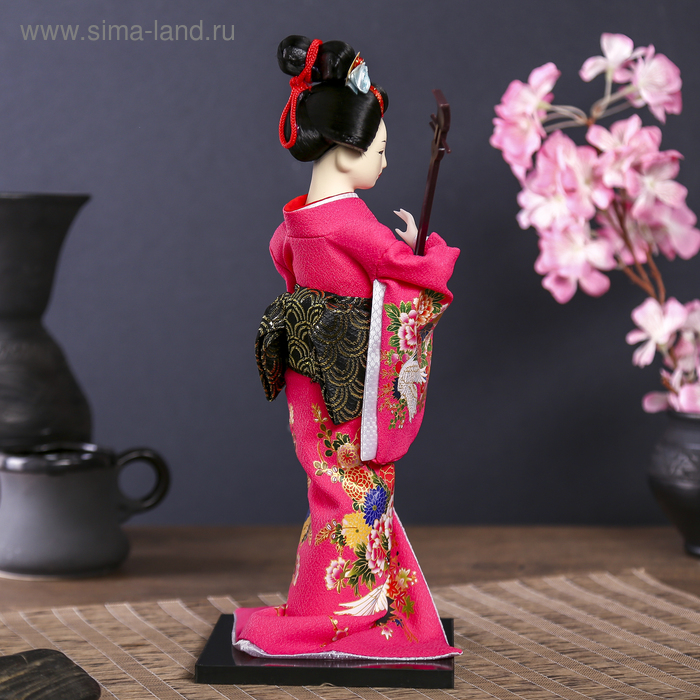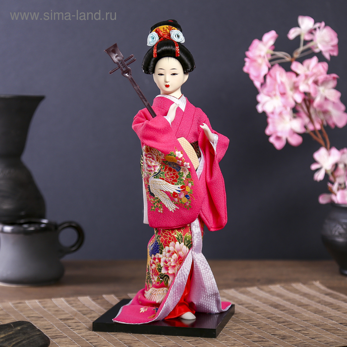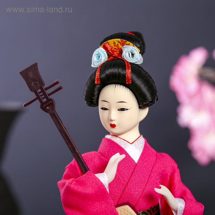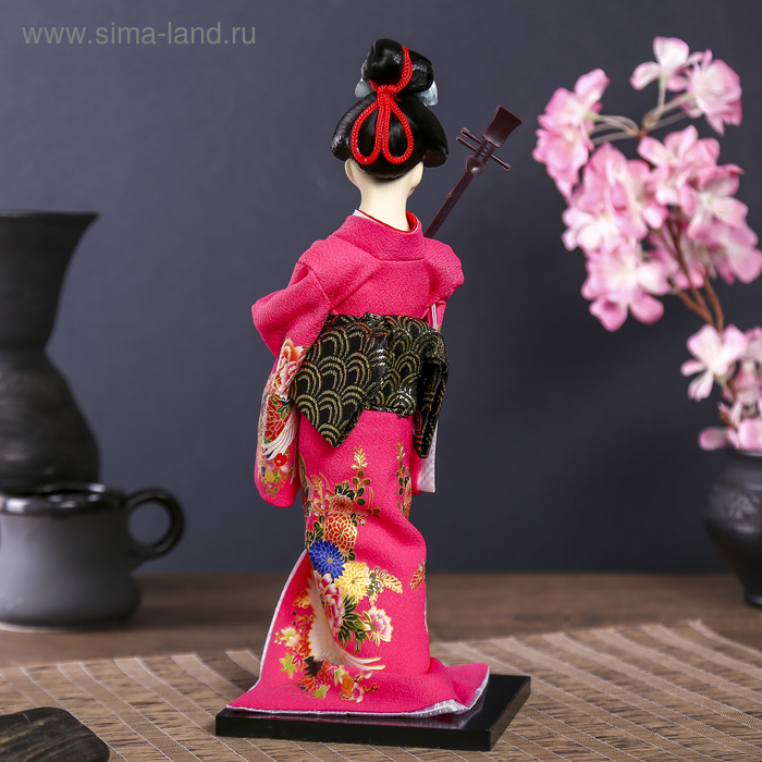 Кукла коллекционная "Японка в цветочном кимоно с музыкальным инструментом" 30х12,5х12,5 см
