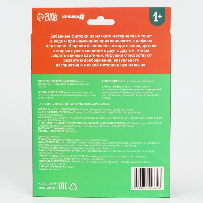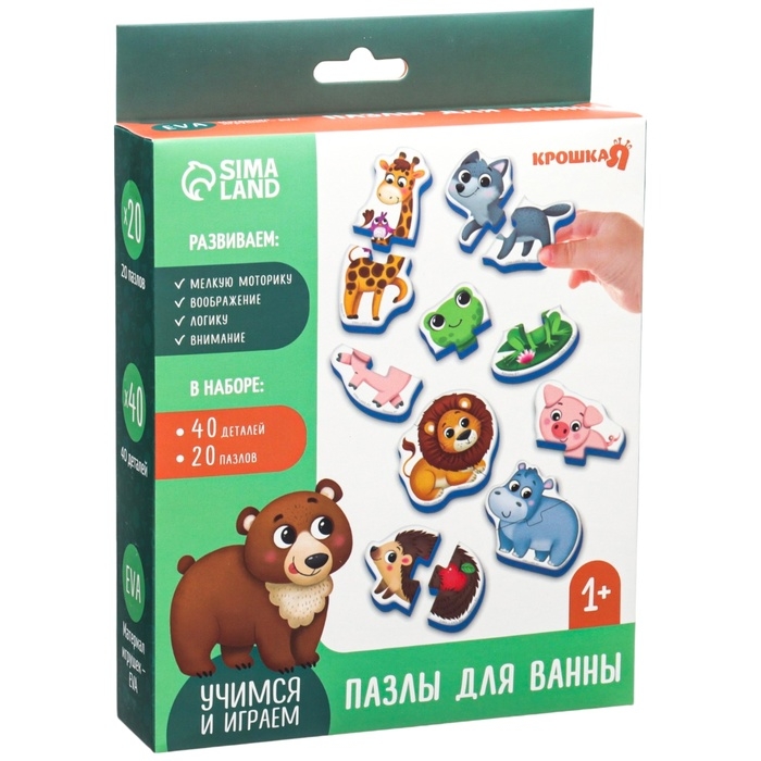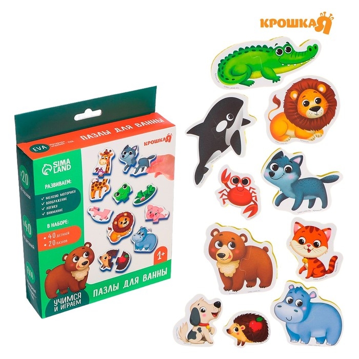 Мягкий пазл для малышей «Собираем животных», 20 пазлов, 40 деталей, Крошка Я