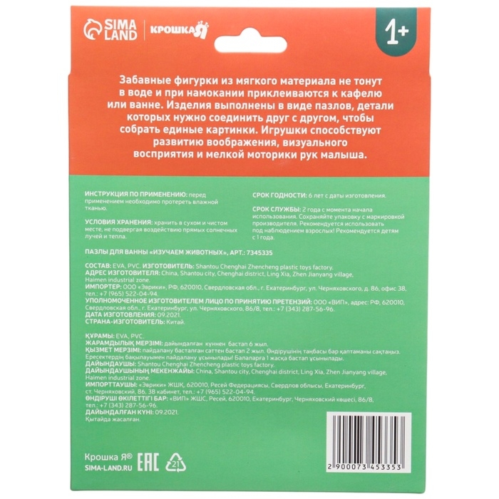 Мягкий пазл для малышей «Учим цифры: Животные», 5 пазлов, Крошка Я