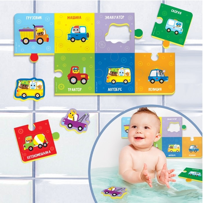 Мягкий пазл для малышей «Веселый транспорт», 16 деталей, Крошка Я