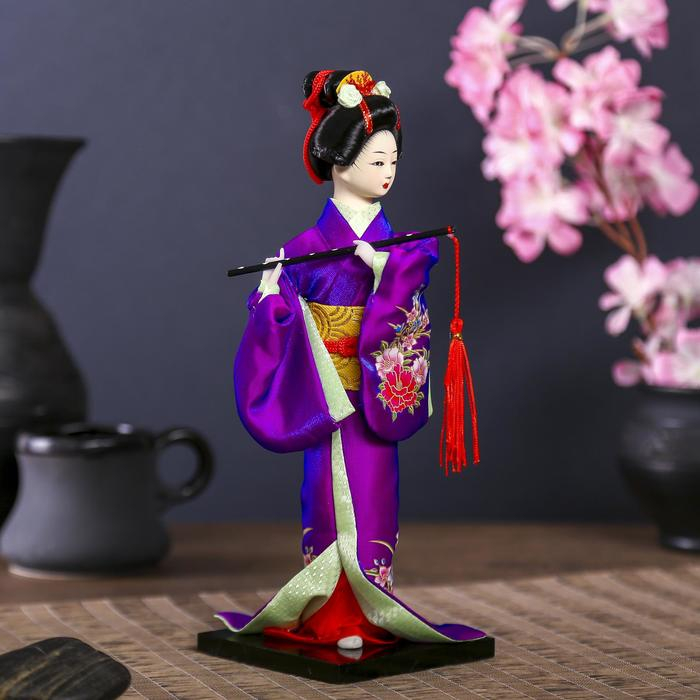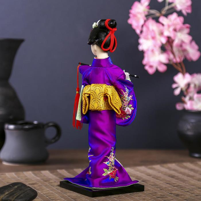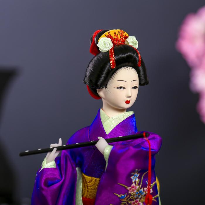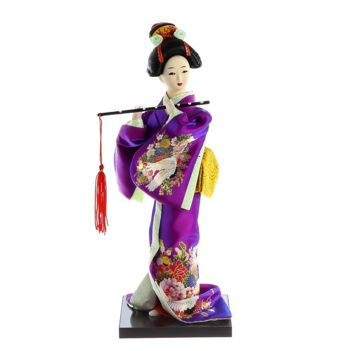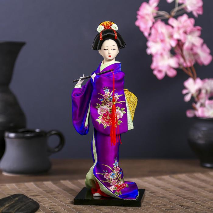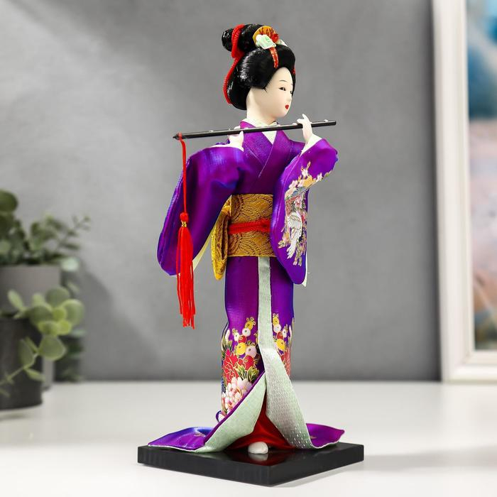 Кукла коллекционная "Японка в фиолетовом кимоно с флейтой" 25х9,5х9,5 см