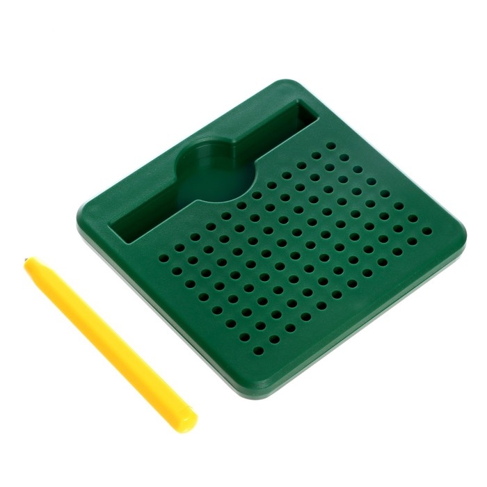 Мини планшет обучающий «Магнитное рисование» зелёного цвета с 96 отверстиями станет отличным инструментом для развития фантазии и координации у детей. Этот планшет позволяет создавать разнообразные изображения с помощью магнитного стилуса и металлических шариков, превращая обучение в увлекательную игру.
