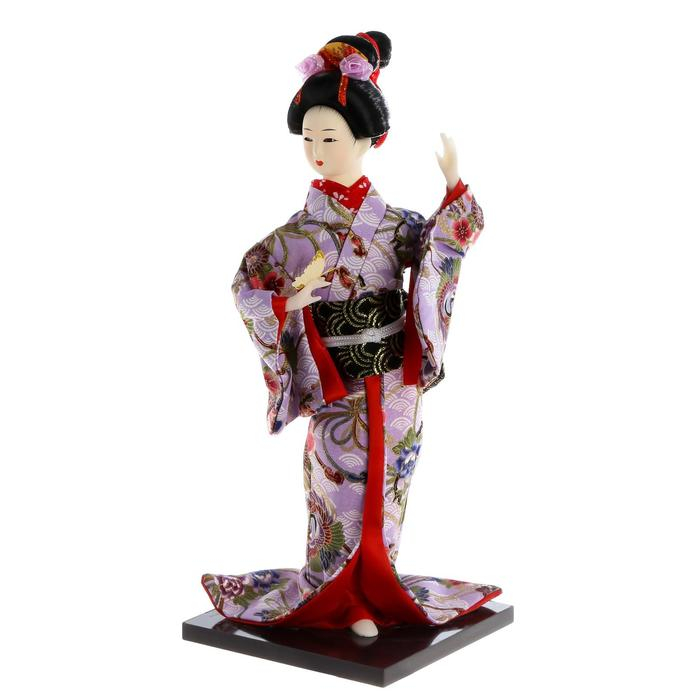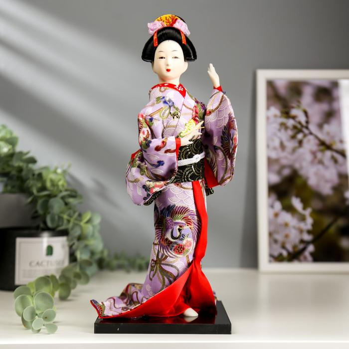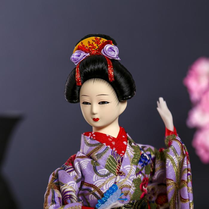Кукла коллекционная "Японка в цветочном кимоно с бабочкой на руке" 30х12,5х12,5 см