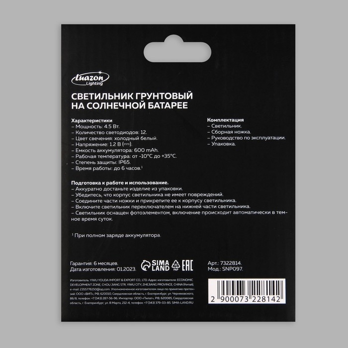 Садовый светильник на солнечной батарее, 11.5 × 13 × 11.5 см, 12 LED, свечение белое