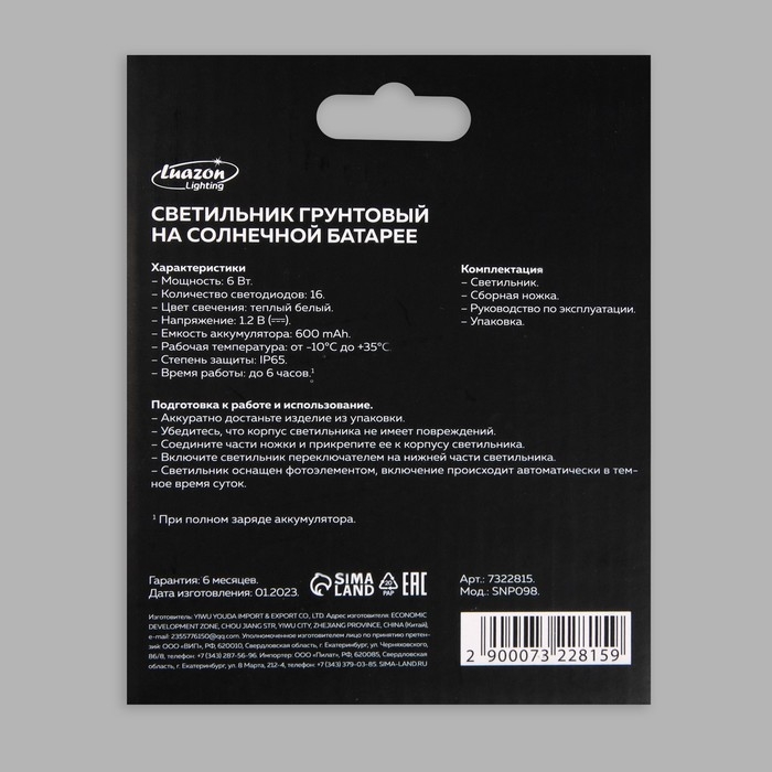 Садовый светильник на солнечной батарее «Трапеция», 5.3 × 38 × 5.3 см, 1 LED, свечение белое