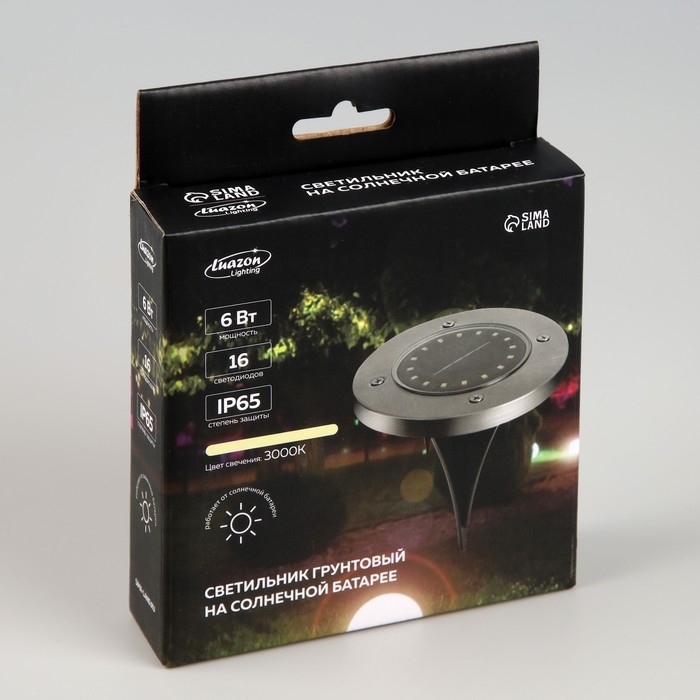 Садовый светильник на солнечной батарее, 11.5 × 13 × 11.5 см, 16 LED, свечение тёплое белое
