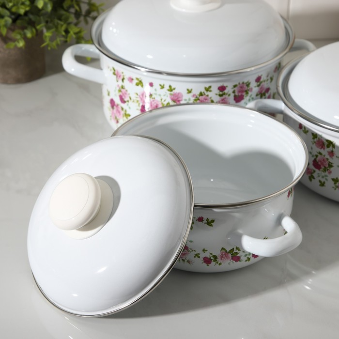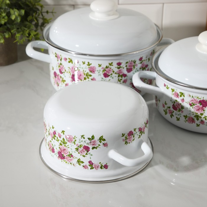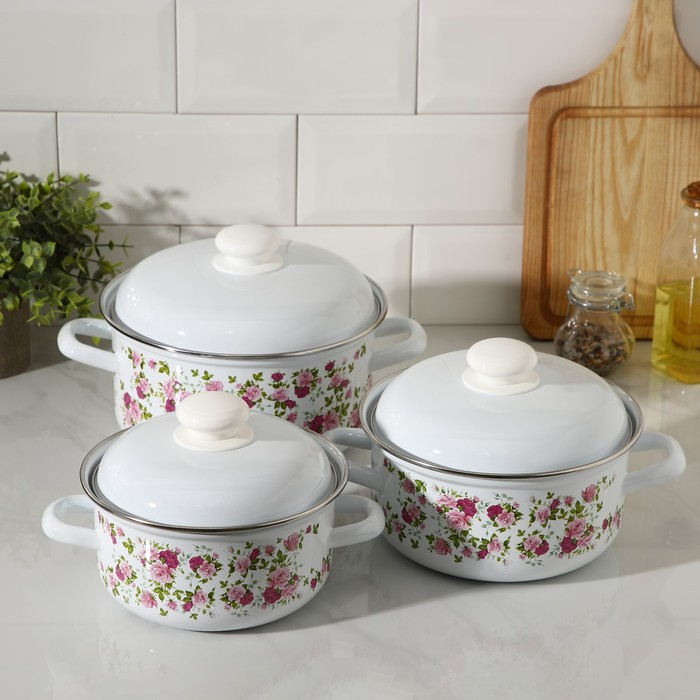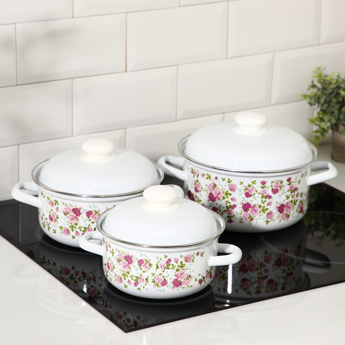 Набор эмалированных кастрюль «Китайская роза», 3 предмета: 1,5 л, 2 л, 3 л, индукция