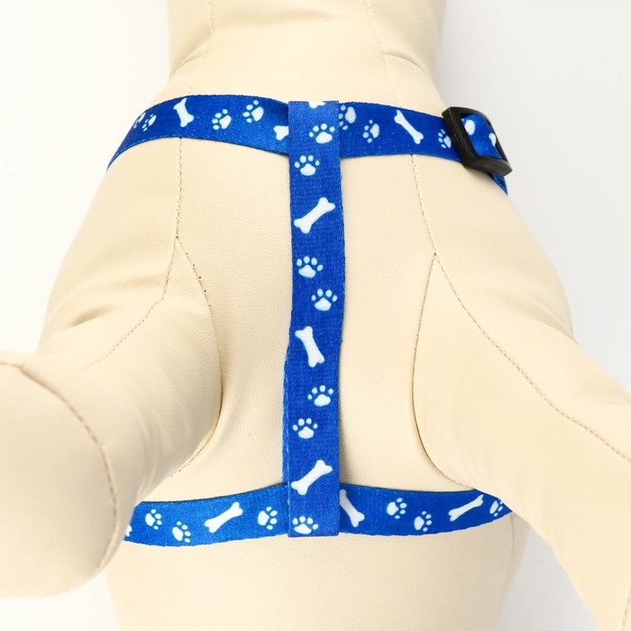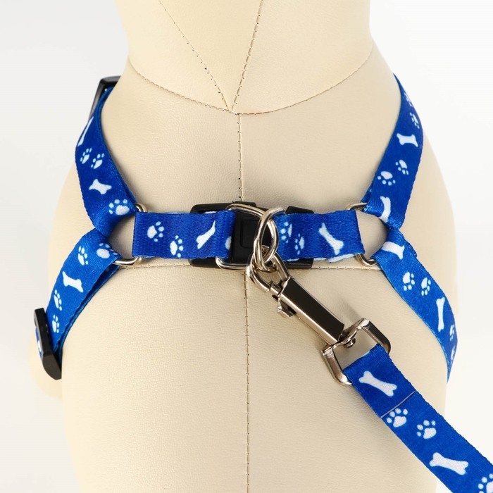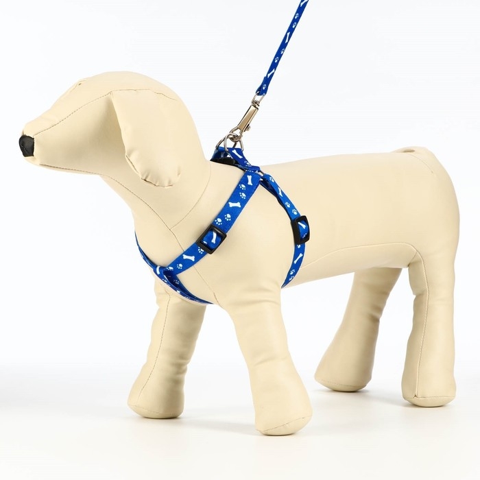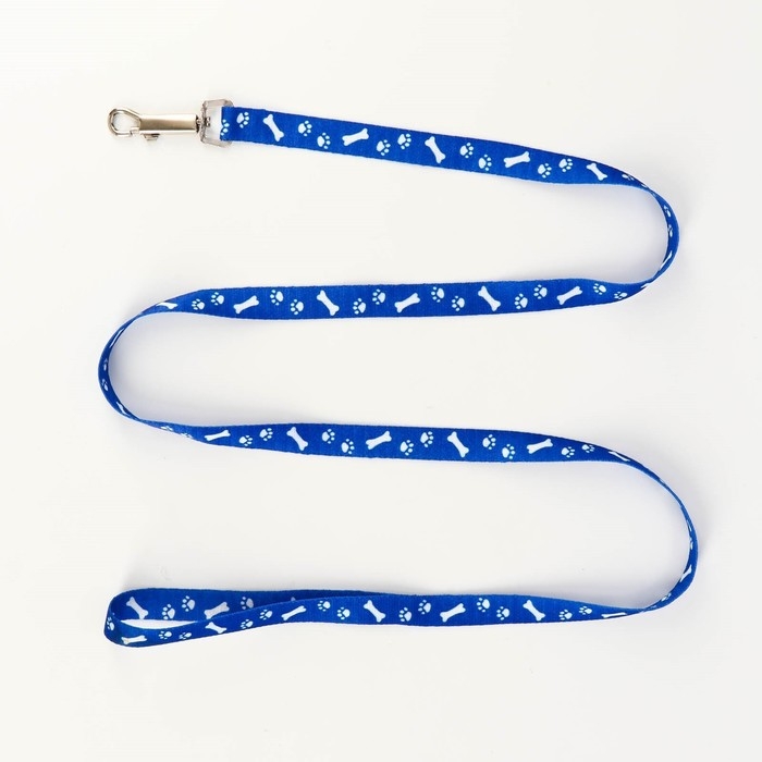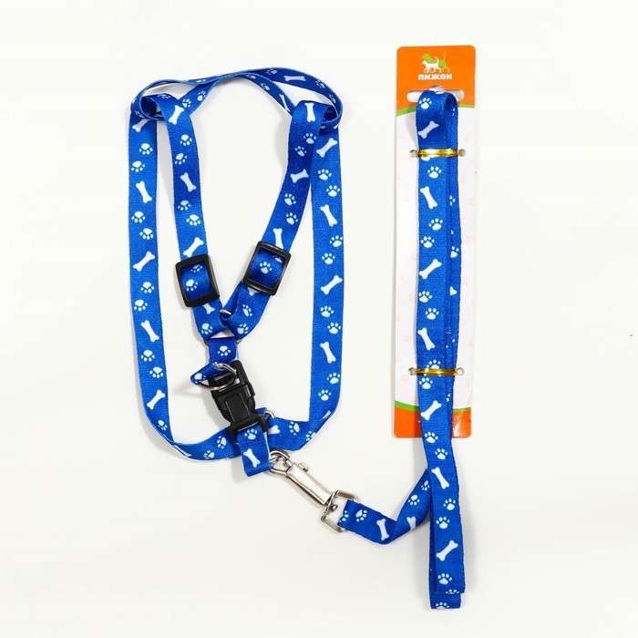 Комплект капроновый "Косточки и лапки", поводок 120 х 1,5 см, ОГ 30-44 см, синий