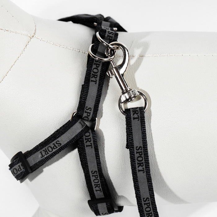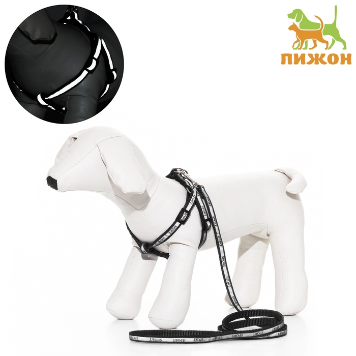 Комплект "Спорт" светоотражающий, поводок 120 х 1 см, ОГ 23-35 см, чёрный