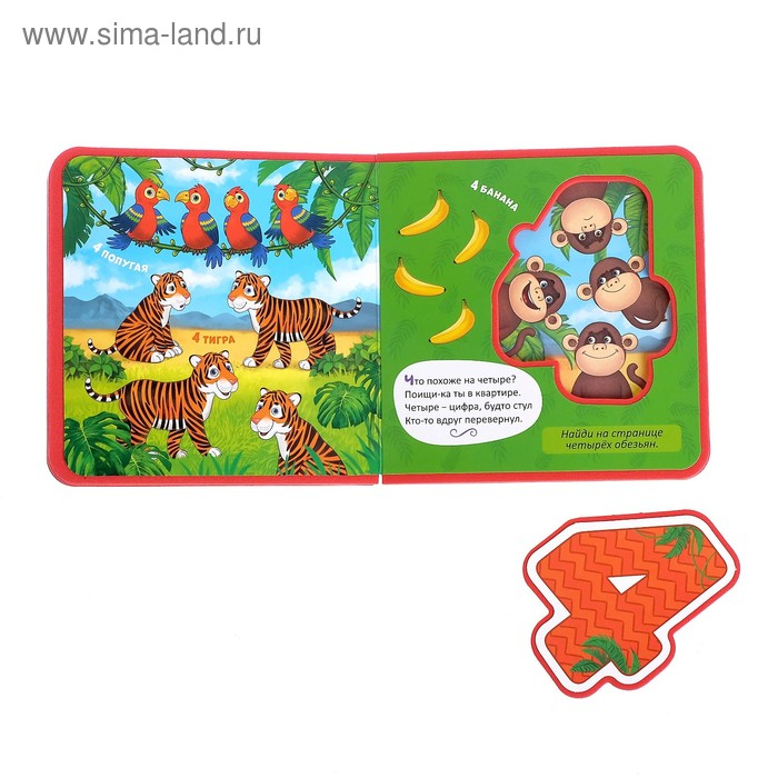 С мягкой книгой малыш получит свои первые знания о цифрах и освоит счёт от 1 до 5. А также сможет поиграть с вынимающимися цифрами-пазлами.
