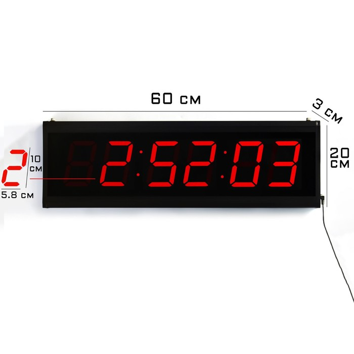 Часы настенные электронные "Соломон", 20 х 3 х 60 см, цифры красные 10 х 5.8 см, USB