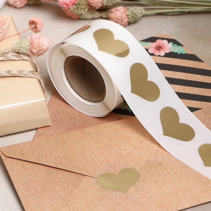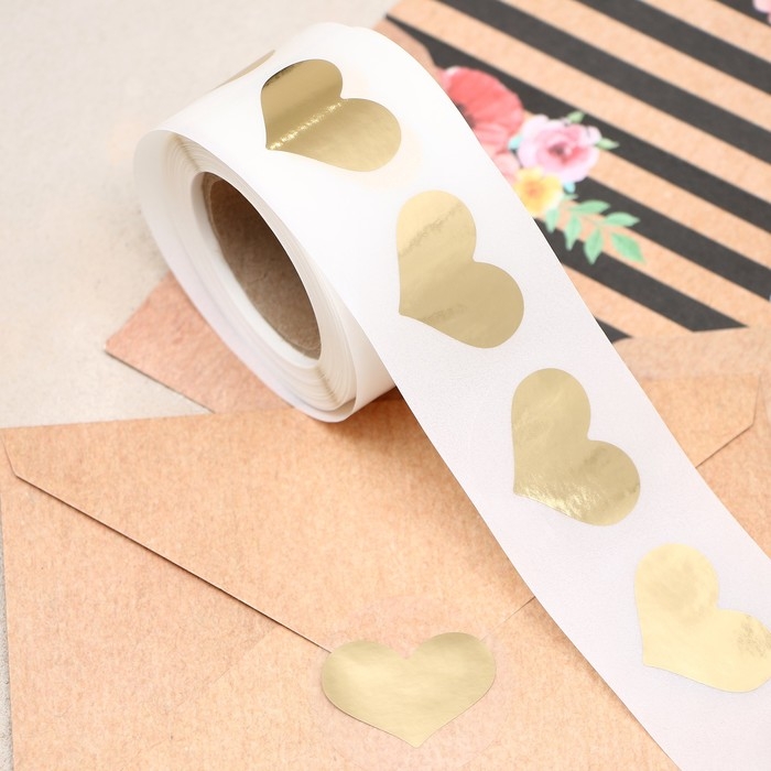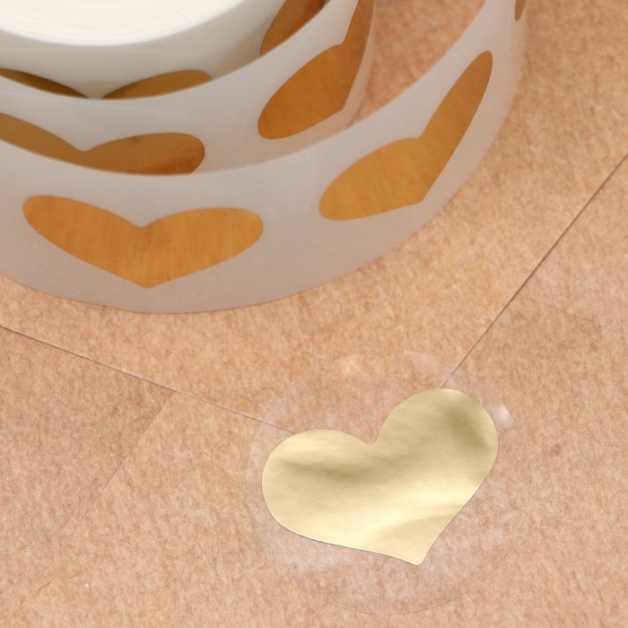 Наклейка прозрачная с тиснением "Сердца", золотая, 300 шт 3,8 х 3,8 см
