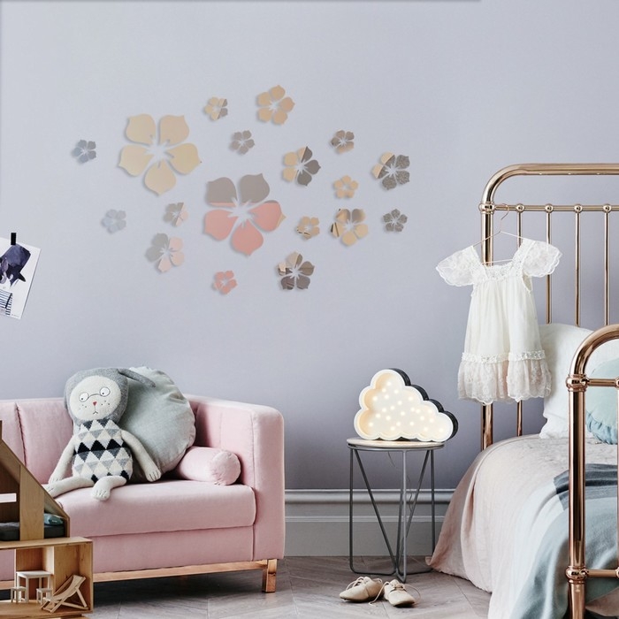 Наклейки интерьерные "Цветы", зеркальные, декор на стену, набор 18 шт, 15 7.5 4.5 см