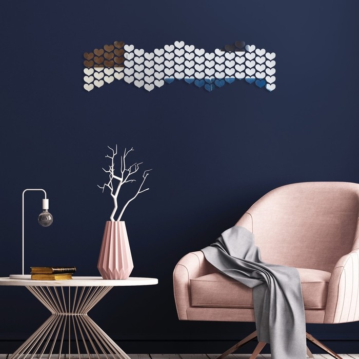 Наклейки интерьерные "Сердца", зеркальные, декор на стену, 100 эл, размер эл 2 х 2.5 см