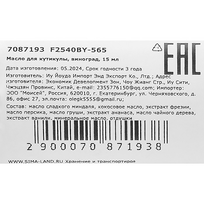 Масло для увлажнения и питания кутикулы 15 мл, виноград