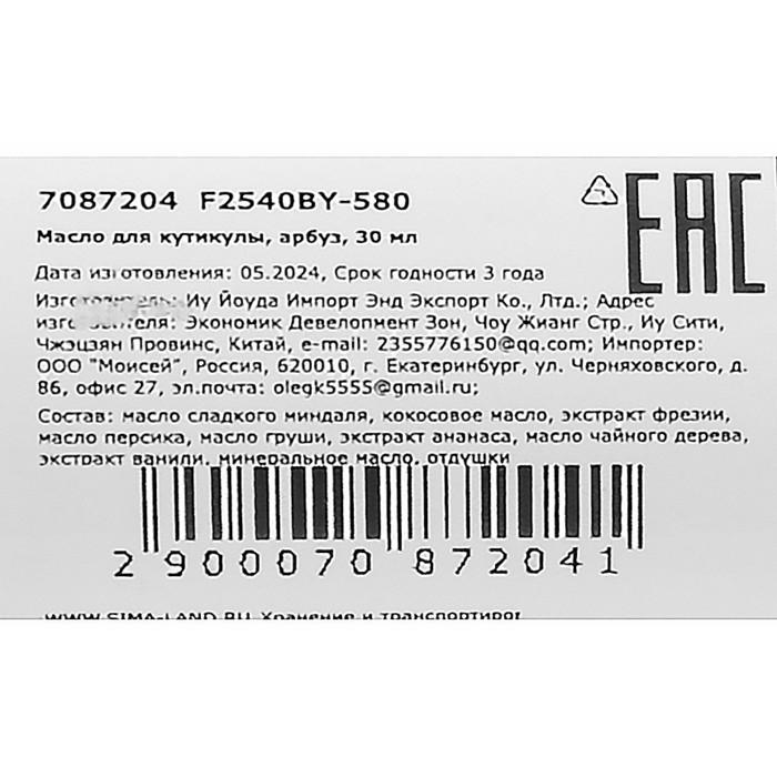 Состав: масло сладкого миндаля, кокосовое масло, экстракт фрезии, масло персика, масло груши, экстракт ананаса, масло чайного дерева, экстракт ванили, минеральное масло, отдушки.