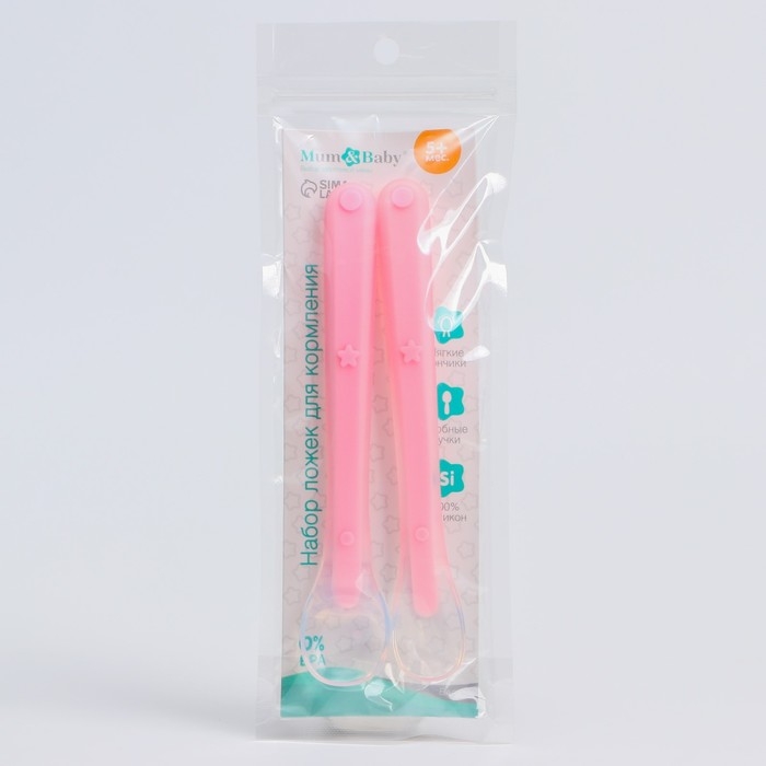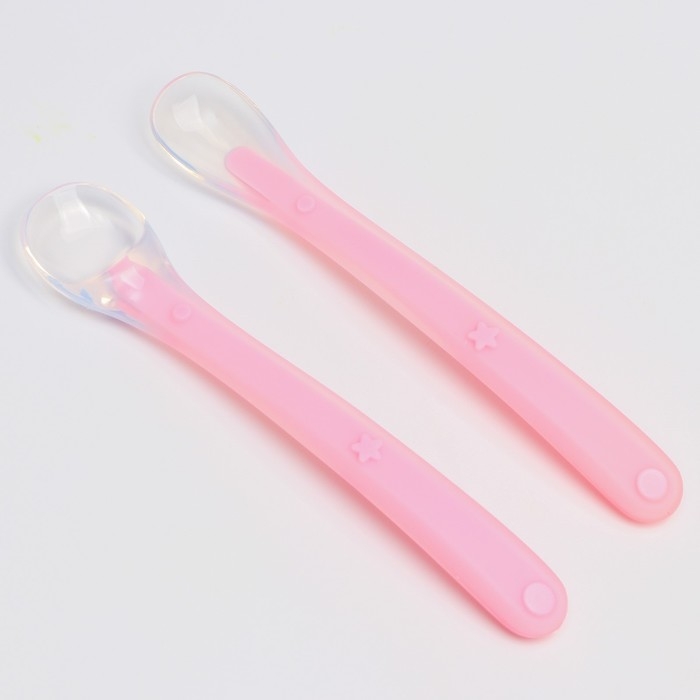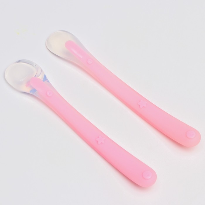 Набор силиконовых ложек для кормления, 2 шт., цвет розовый