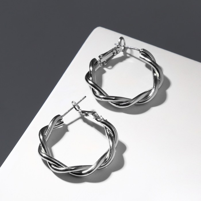 Серьги-кольца «Две линии» объятие, цвет серебро, d=2,5 см