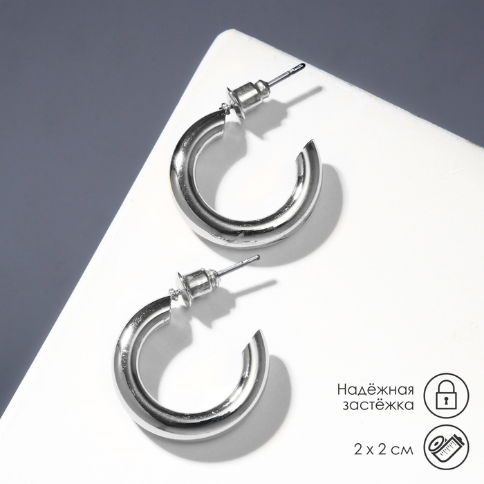 Серьги-кольца «Линия» полукруг, цвет серебро, d=2 см