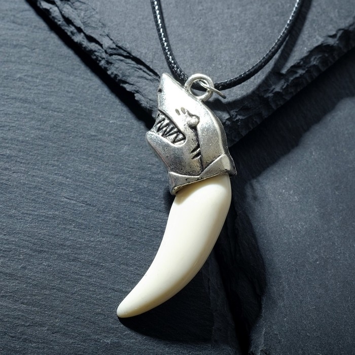 Кулон унисекс «Клык акулы», цвет белый в чернёном серебре на чёрном шнурке, 45 см