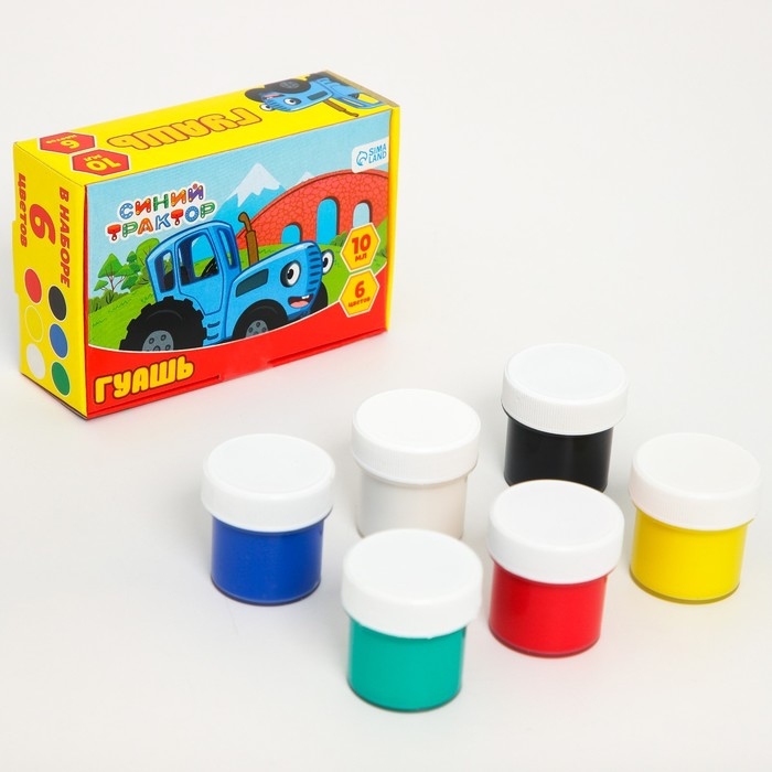 Гуашь 6 цветов по 10 мл, Синий трактор