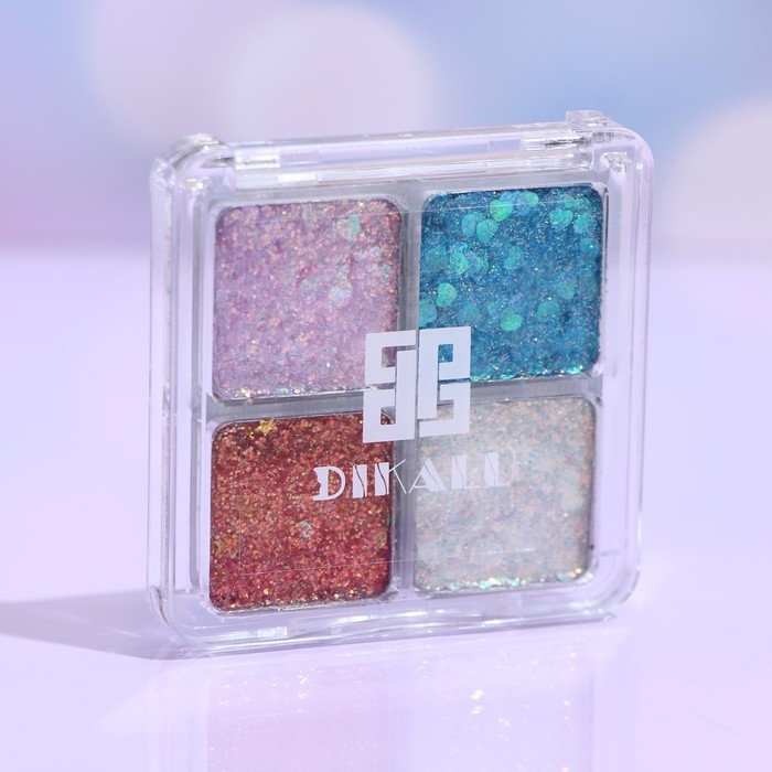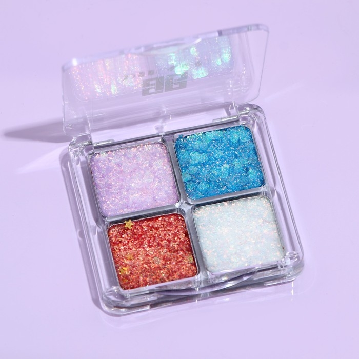 Палетка теней для век с глиттером 4 цвета