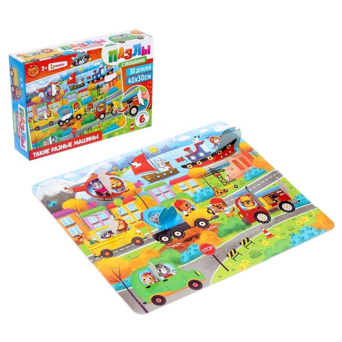 Пазлы с окошками «Такие разные машины», 30 деталей