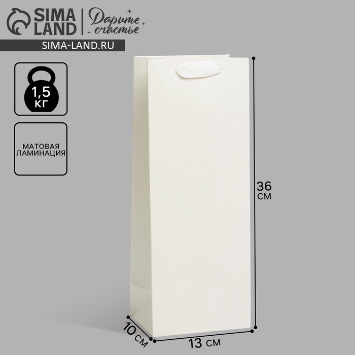 Пакет подарочный под бутылку, упаковка, «Молочный», 13 x 36 x 10 см