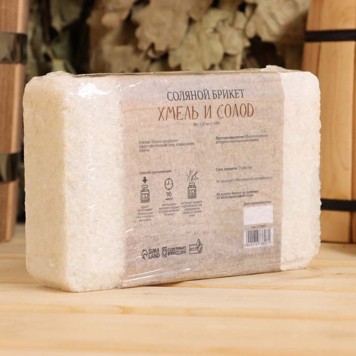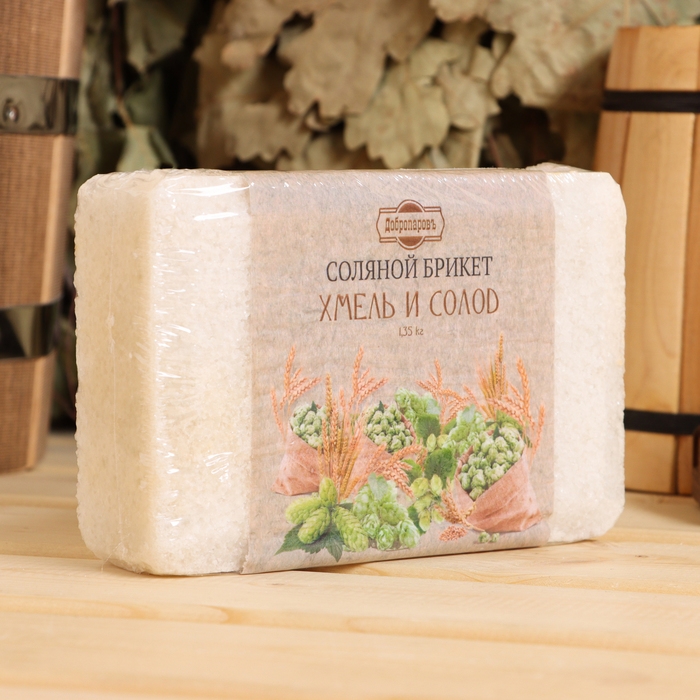 Соляной брикет "Хмель и солод" эффект жженого хлеба 1,35 кг "Добропаровъ"
