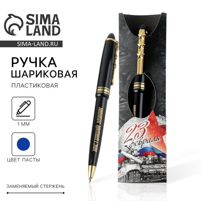 Ручка шариковая синяя паста, пластиковая со звездой "С 23 Февраля"