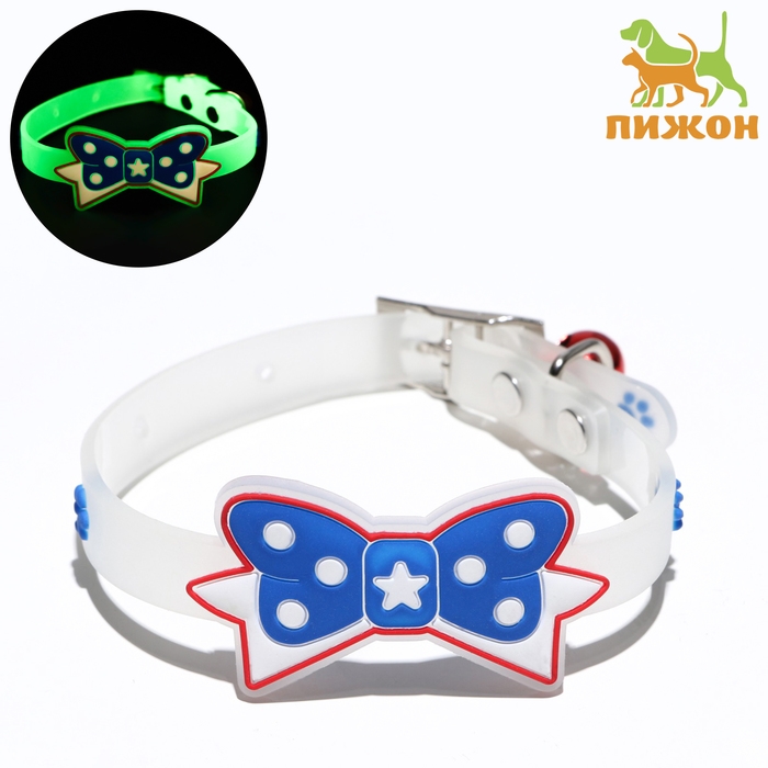 Ошейник, светящийся в темноте, "Нежные сердца" (люминесцентный), 30 х 1 см, ОШ 19-26 см, микс