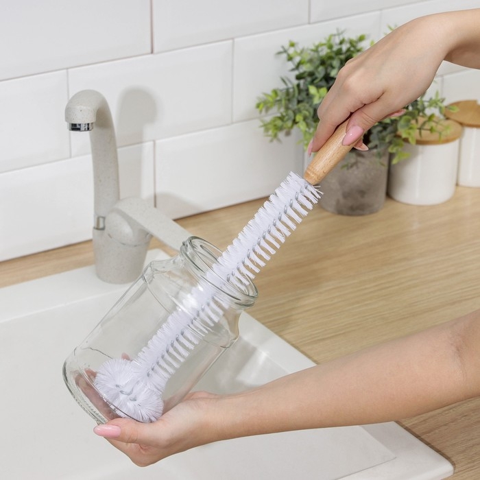 - Кухонный ёрш подходит для мытья посуды, банок, колб кальянов, ваз, кувшинов, чайников, бутылок, термосов, стаканов, графинов и прочей глубокой посуды с узким горлышком.