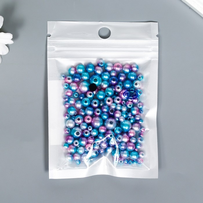 Бусины для творчества пластик "Круглые. Градиент. Русалка голубая" d=3-8 мм, набор 10 гр