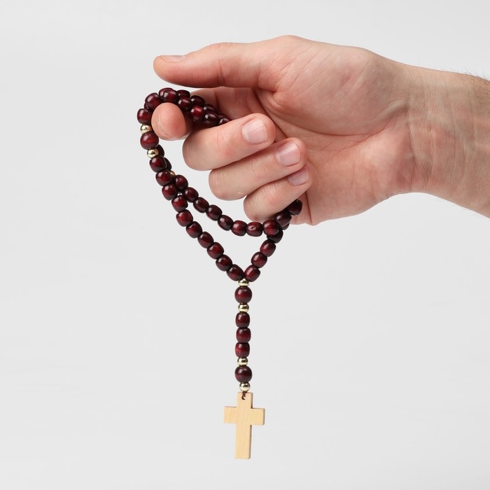 Чётки деревянные «Православные» 33 бусины с крупным крестом, цвет вишнёвый
